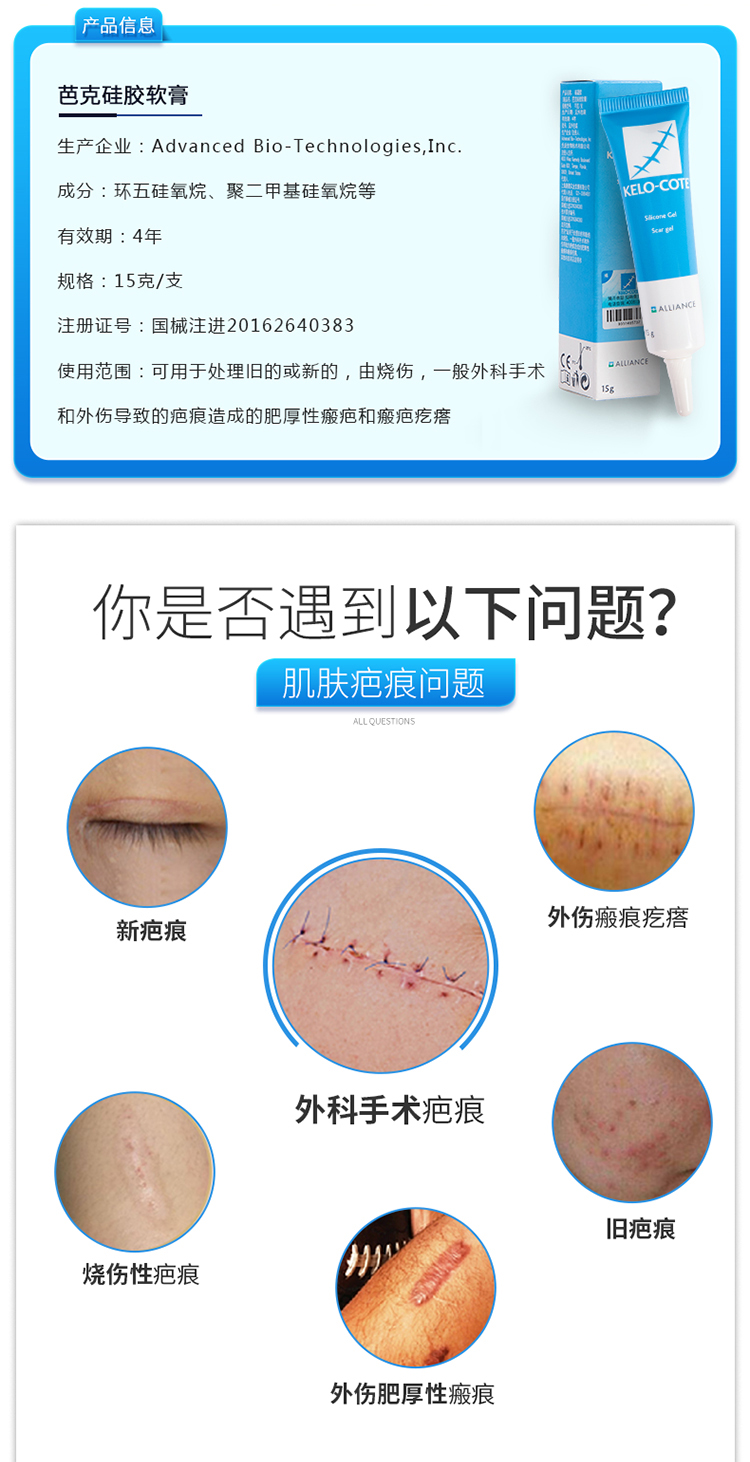 芭克旗舰店】疤克芭克巴克祛疤膏美国进口硅凝胶软膏去疤膏疤痕修复凝胶